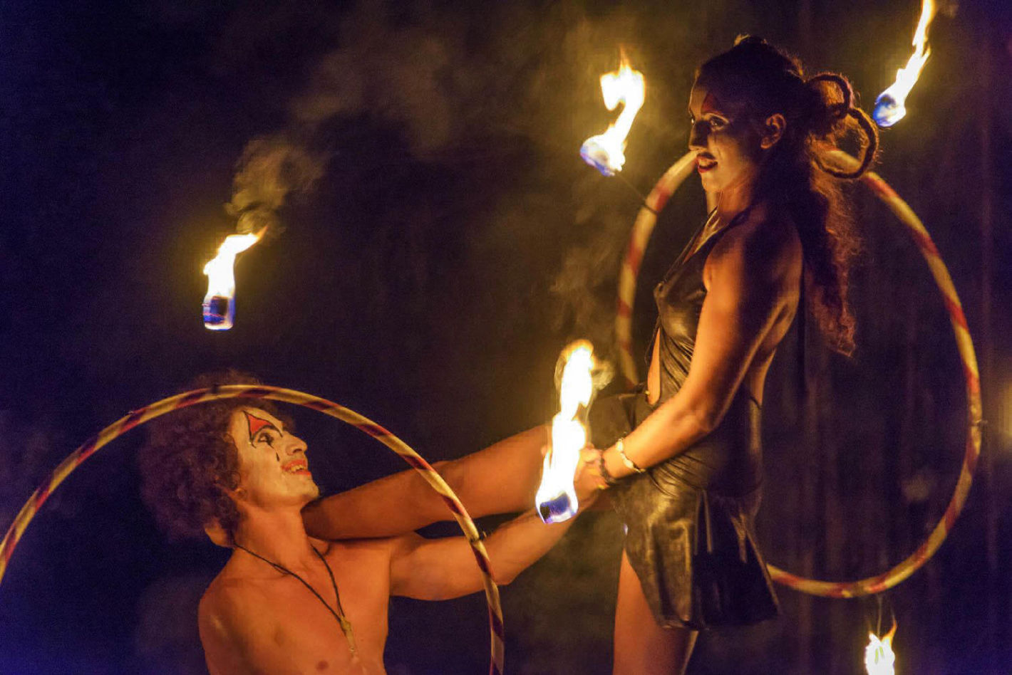 During their travels, The Fiery Pixies skills grew and developed. Their movement practice has deepened through learning and exploring contemporary dance, acro balance, theatre and clowning. As flow artists by heart, the two pixies incorporate all these new forms of movement and expression into their current practise to expand and grow their flow. Coming from Africa, Shaheen & Shouniez’ style has always been rhythmic, and dance has always been the forefront of their practice.